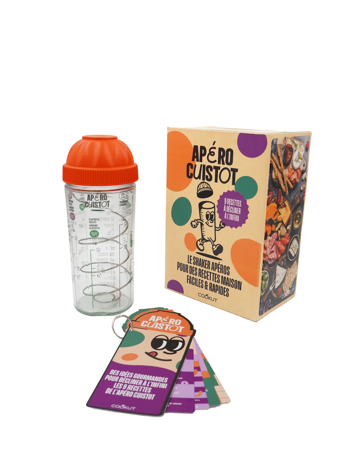 Sans recette, sans robot, sans balance, sans fouet ni saladier, l'Apéro Cuistot suffit pour préparer 9 bases de recettes gourmandes pour l'apéritif. Le livret vous permettra d'aller plus loin et d'explorer une infinité de variantes : cakes salés, blinis, tartinades, tuiles salées… il y en a pour tous les goûts !