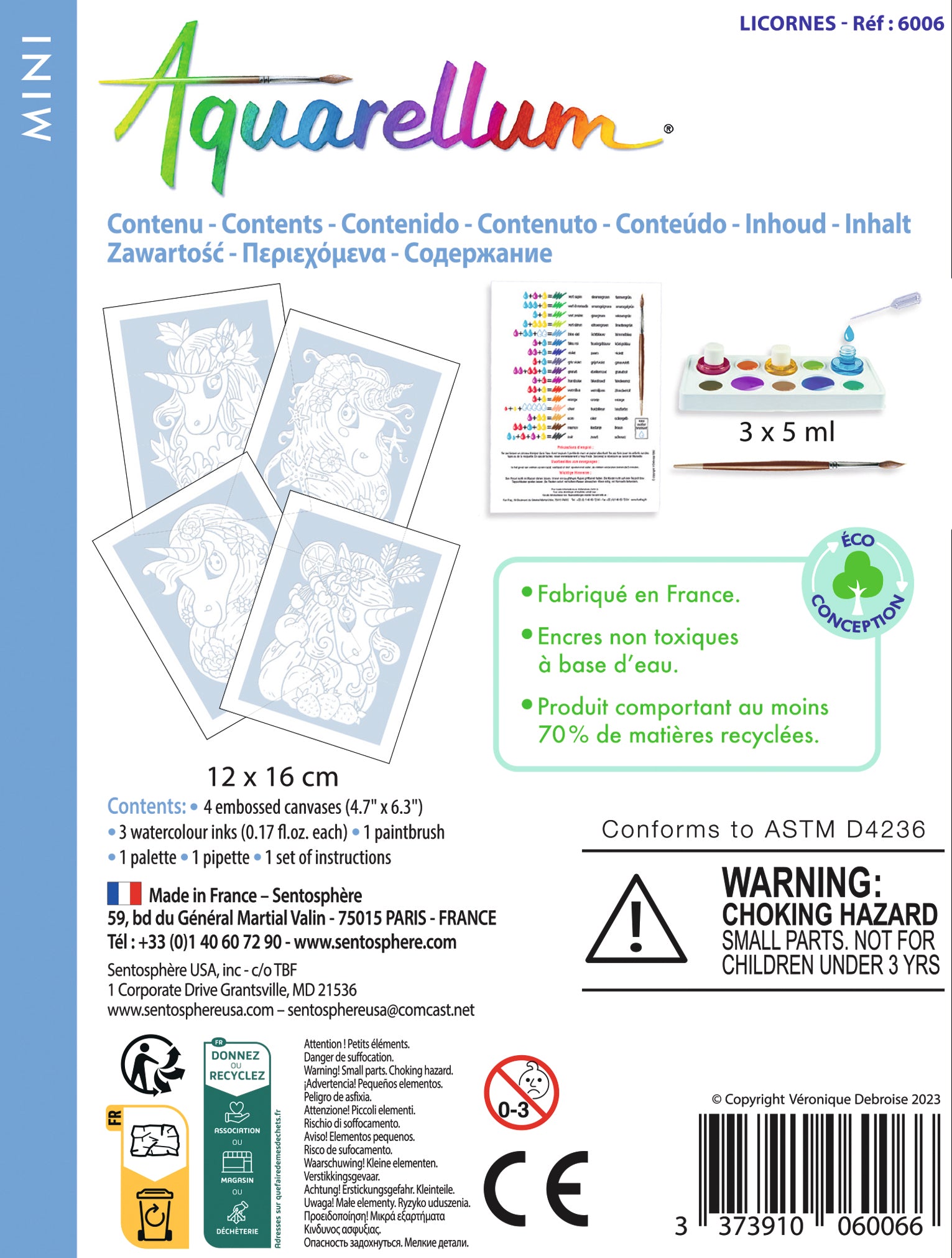 - Des mini illustrations serties qui apparaissent comme par enchantement à chaque coup de pinceau. En effet, elles ne laissent la peinture adhérer que sur des surfaces réservées, et leur format est parfaitement adapté pour les artistes débutant à partir de 5 ans.