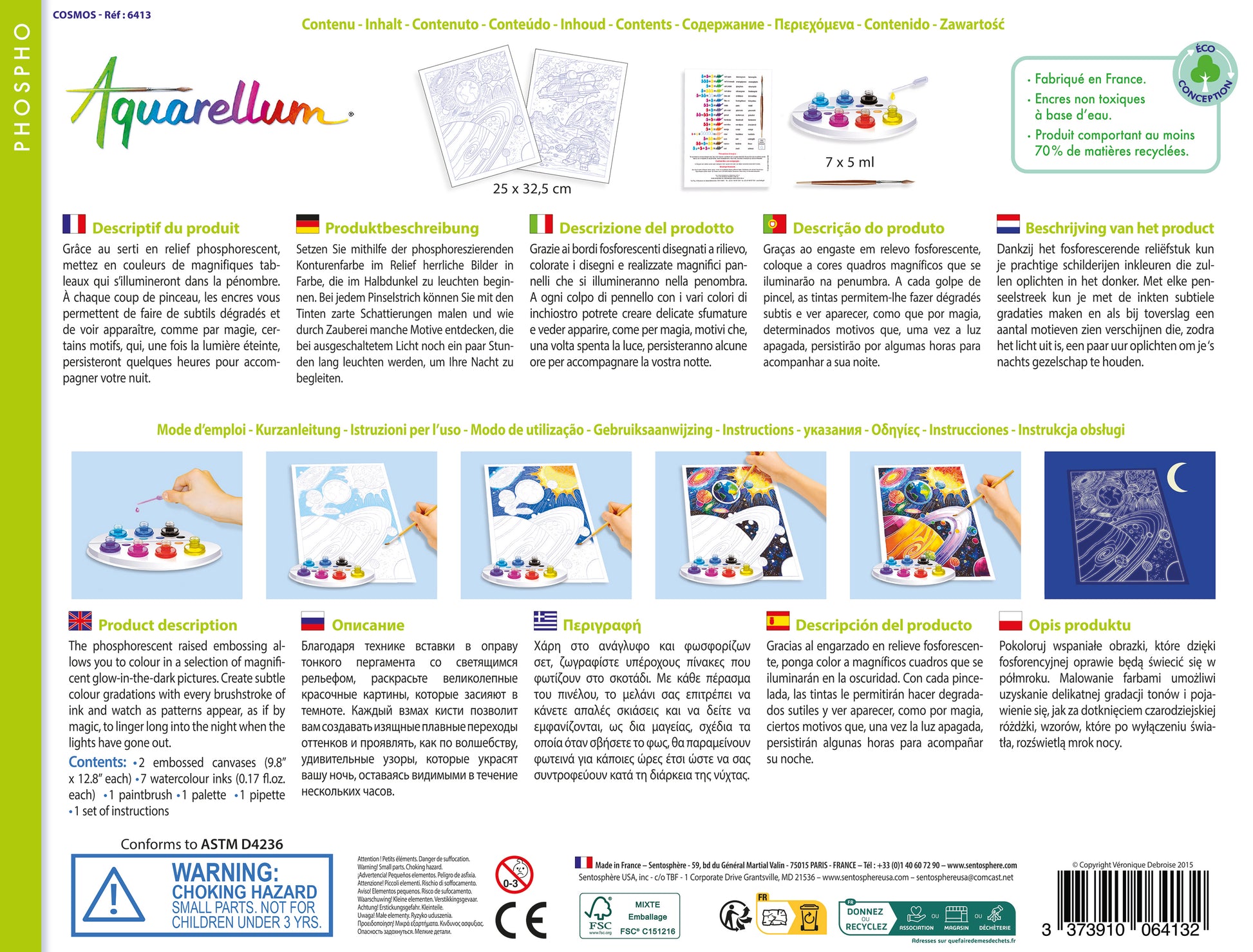 Aquarellum Phospho est la meilleure des techniques pour découvrir le plaisir de la peinture et du mélange des couleurs tout en réalisant de jolies œuvres d’art avant de profiter d’un moment magique à la fin ! En effet, ce loisir créatif permet de créer de magnifiques tableaux en toute simplicité et liberté grâce à une technique unique :