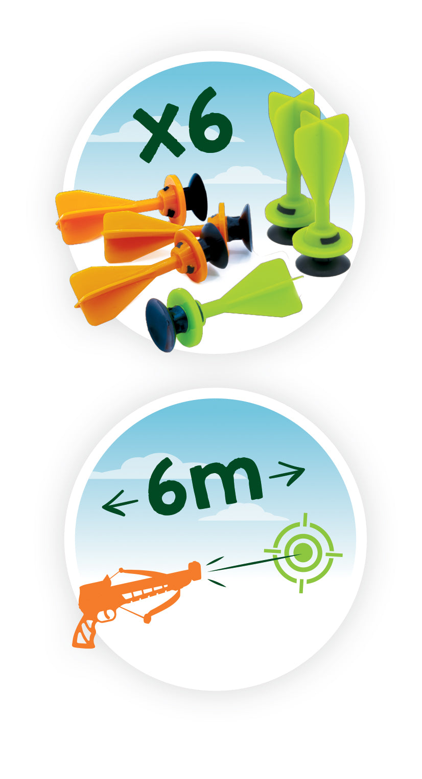 Son mécanisme et ses fléchettes-ventouse permettent une utilisation sans risque.