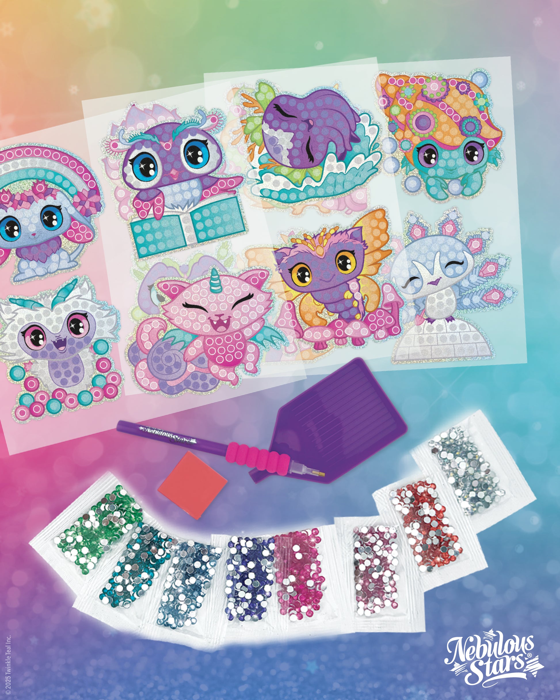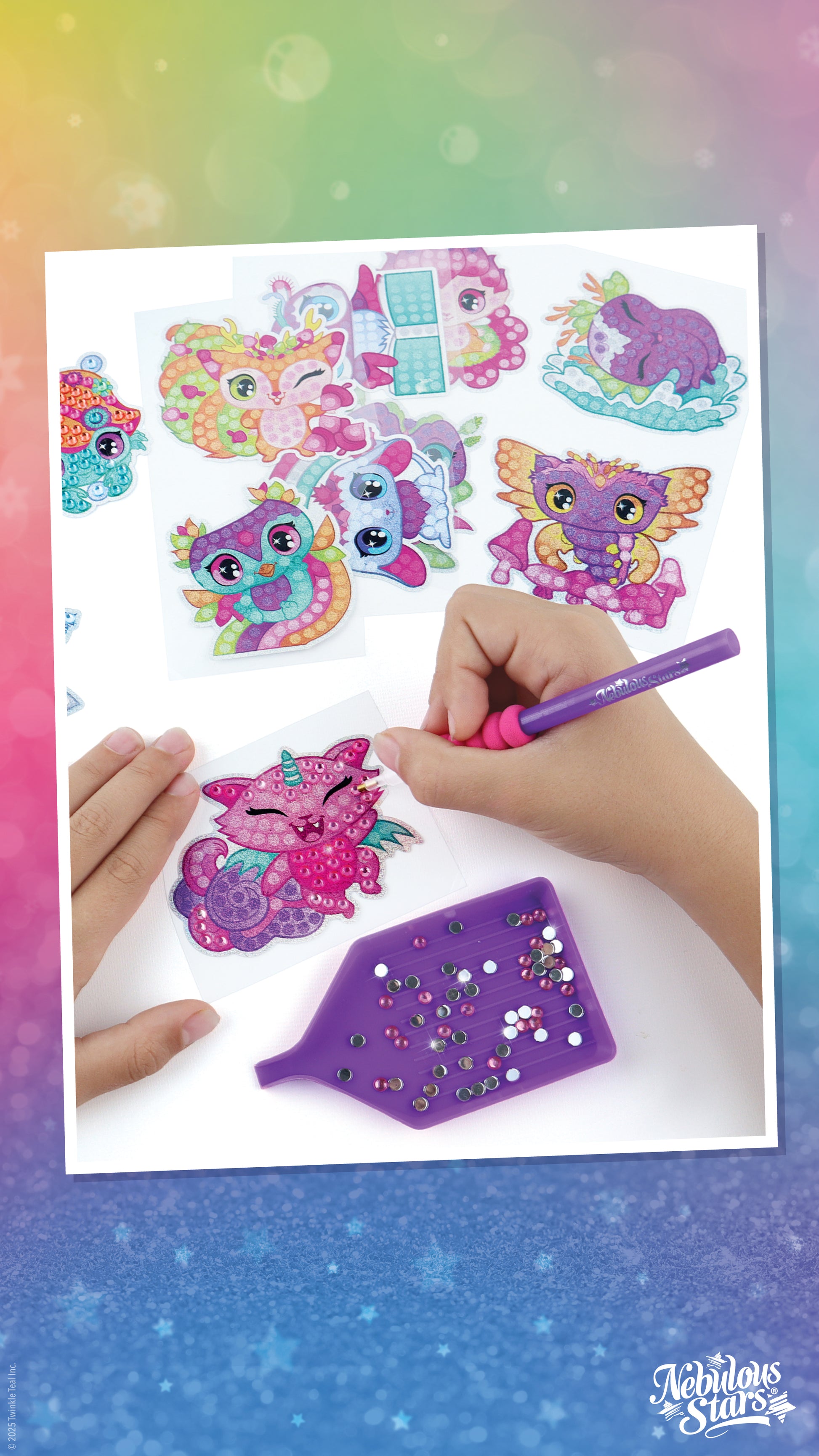 Colle des microstrass avec l'applicateur spécial sur les modèles préencollés pour obtenir de magnifiques autocollants texturés et brillants.