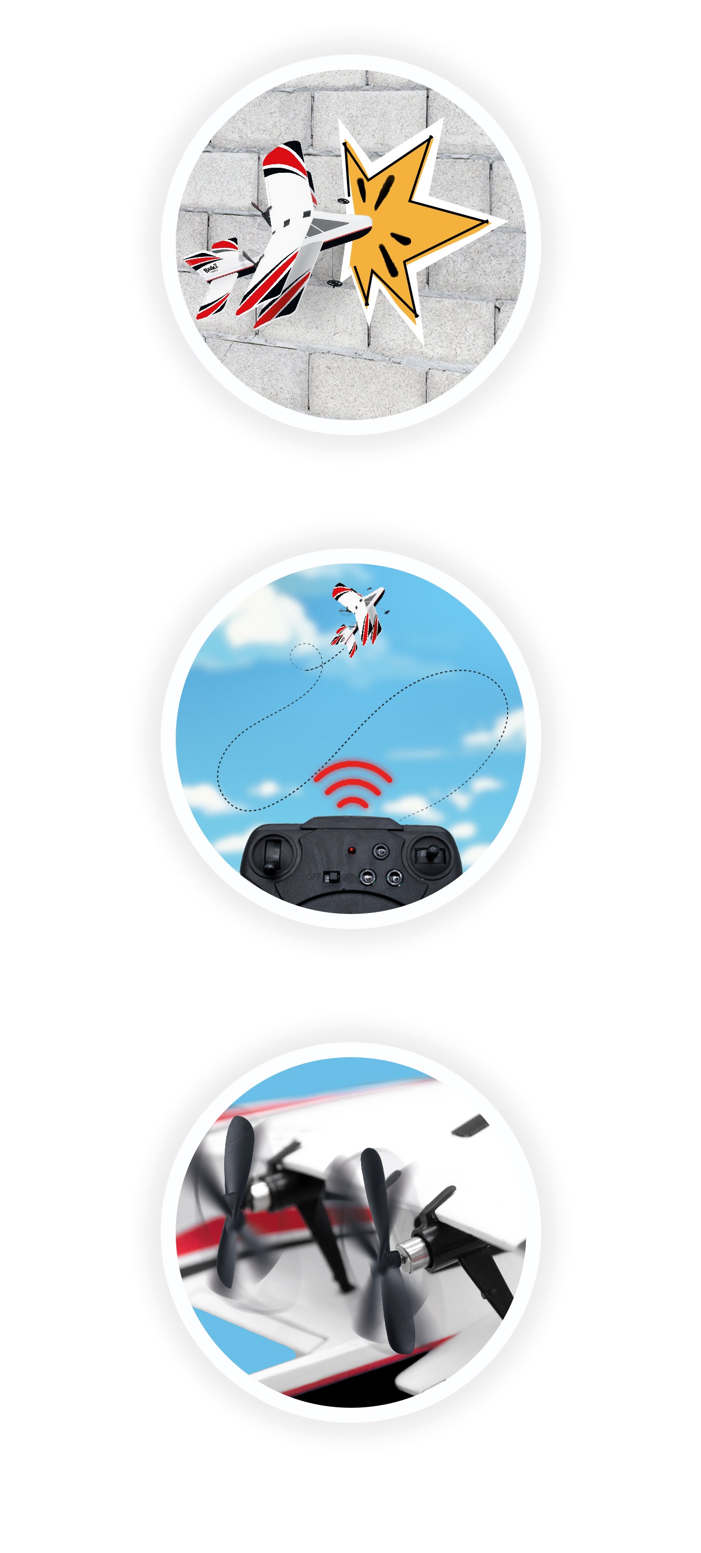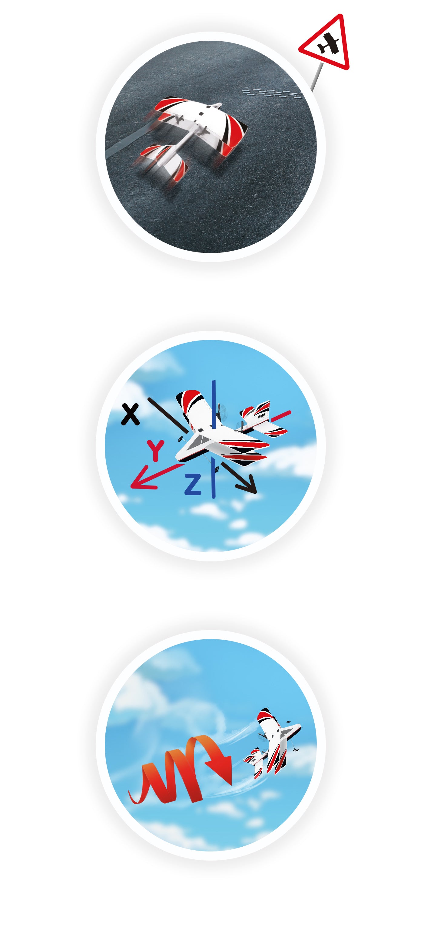 L’avion décolle et se stabilise dans les airs grâce à son gyroscope intégré.