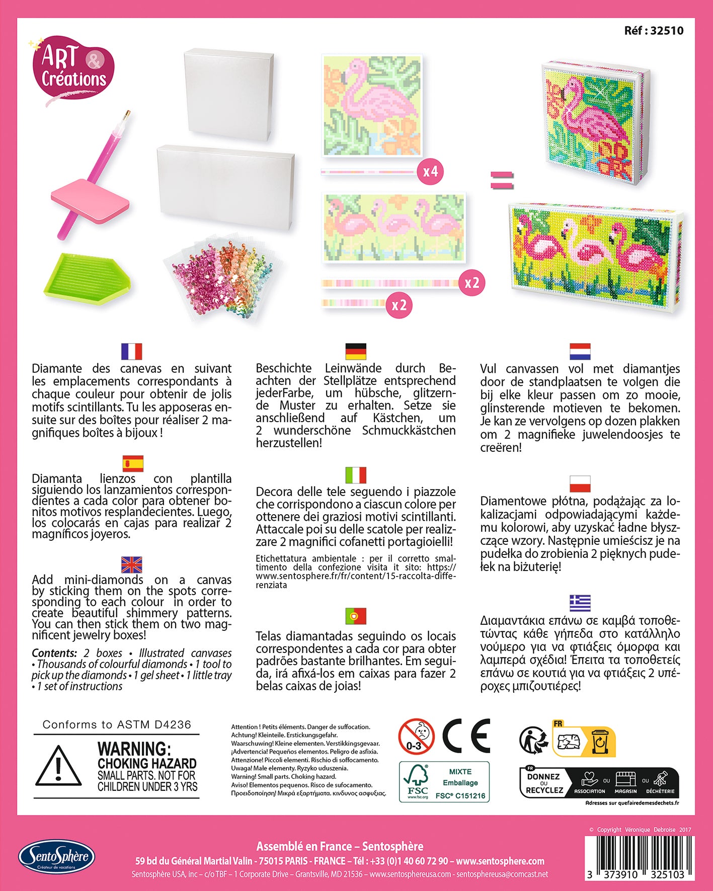 Grâce à ce kit, créez deux magnifiques boîtes à bijoux aux motifs de sublimes flamants roses en les habillant de milliers de strass multicolores !