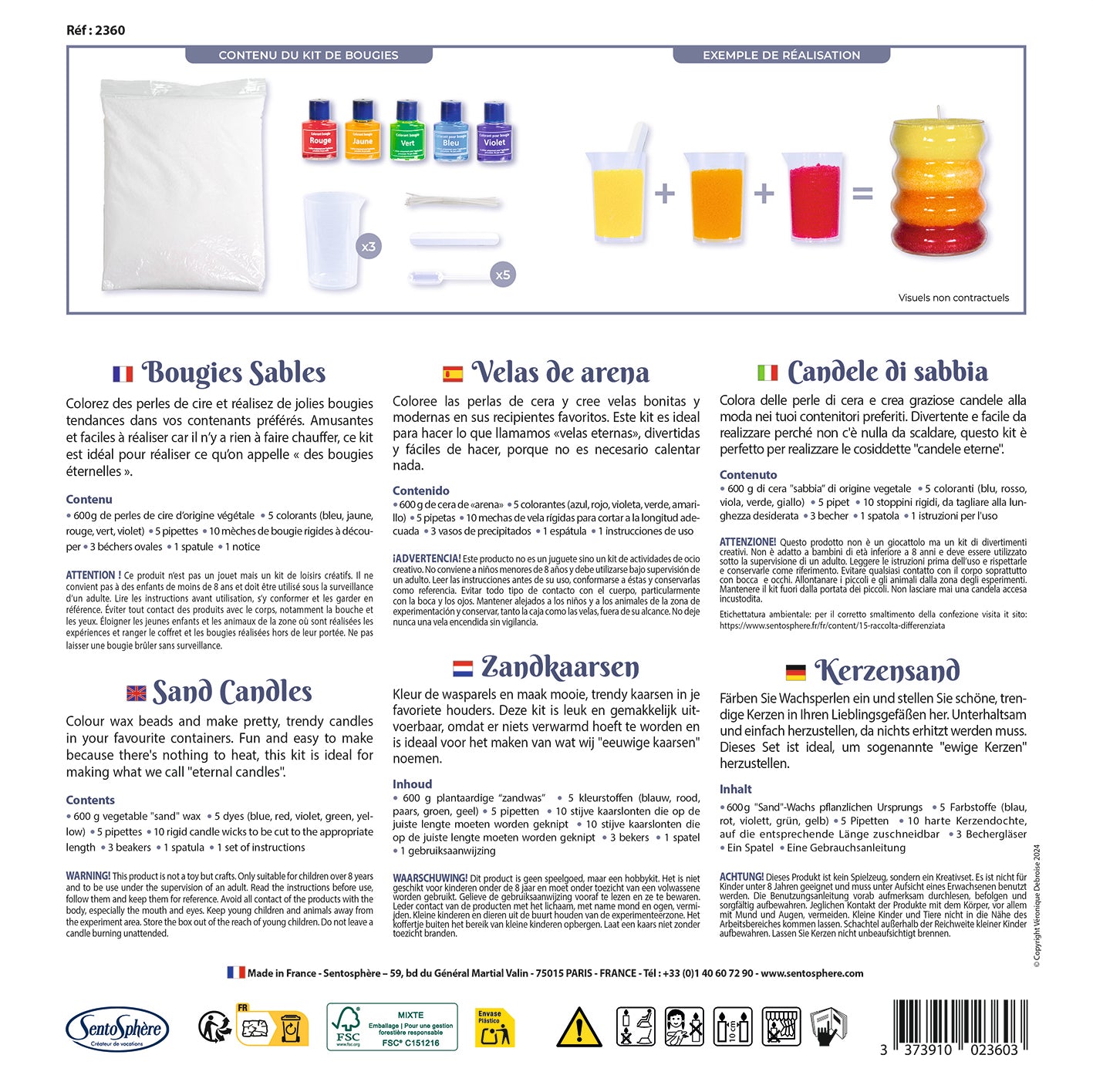 Ce kit créatif « Bougies Sables » permet de fabriquer facilement de jolies bougies colorées à partir d’une cire sable d'origine végétale, aussi simple à manipuler que du sable !