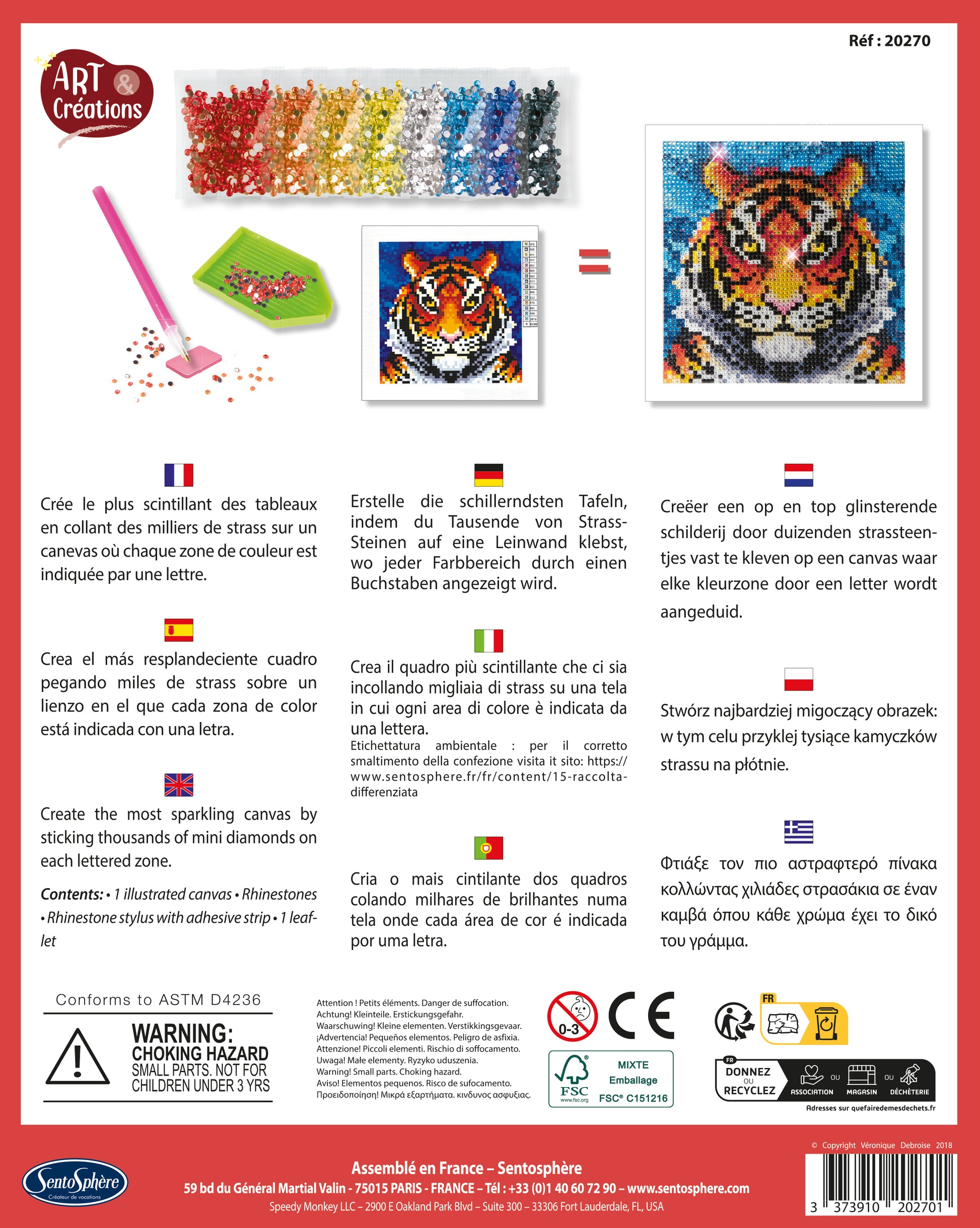 Le canevas à diamanter est une activité anti-stress à base de milliers de petits strass pour réaliser un tigre majestueux !