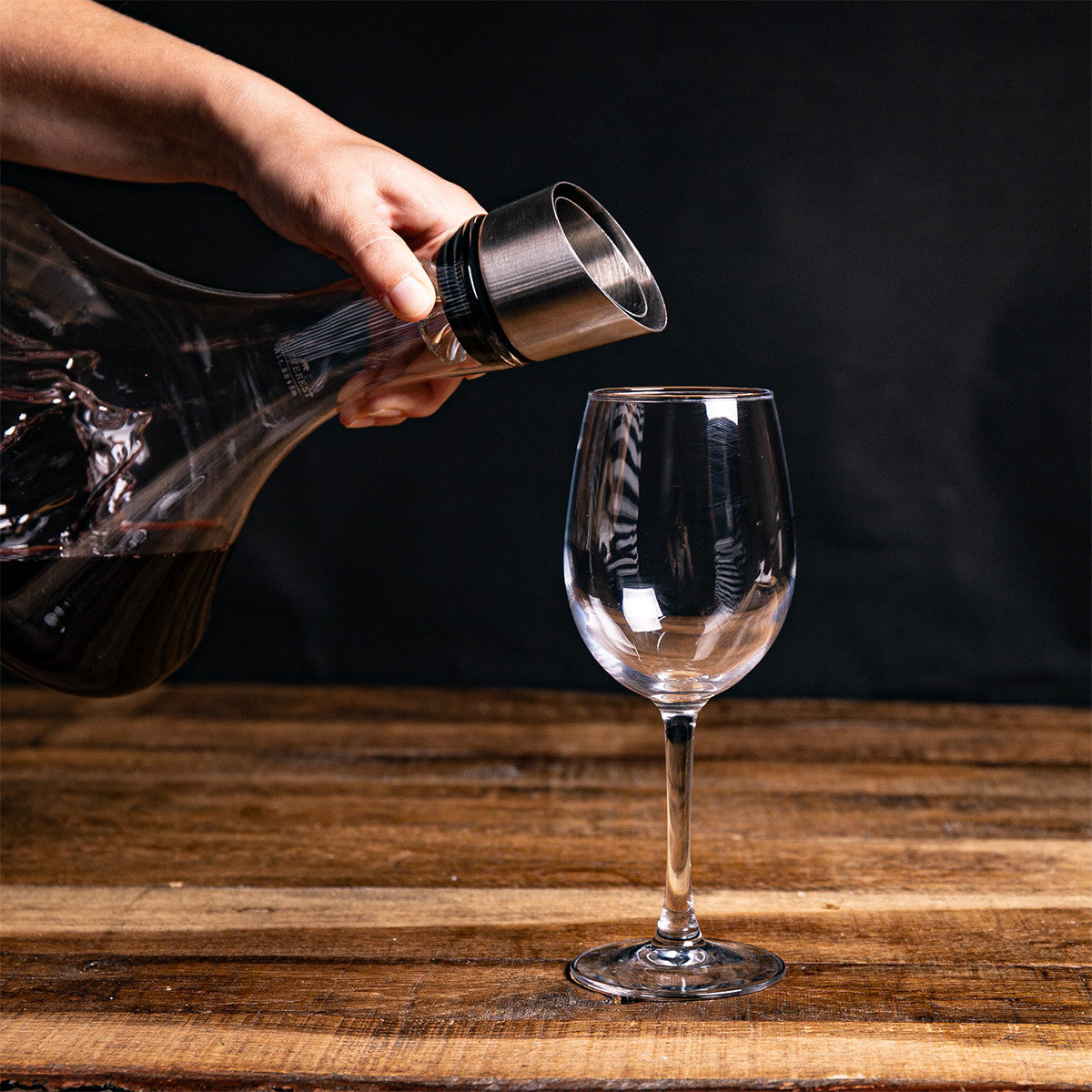 Pour vous proposer une dégustation au sommet, nous avons équipé cette carafe d’un bouchon 3 en 1 qui intègre un filtre, un aérateur et un bec verseur.