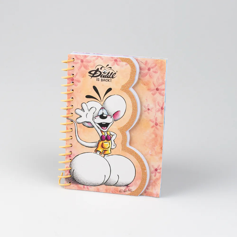 Ce carnet forme A6 Diddl sort du lot avec sa découpe originale qui reprend la silhouette emblématique de Diddl. Compact et pratique, il est parfait pour noter, dessiner ou griffonner tes idées avec une touche d’originalité.