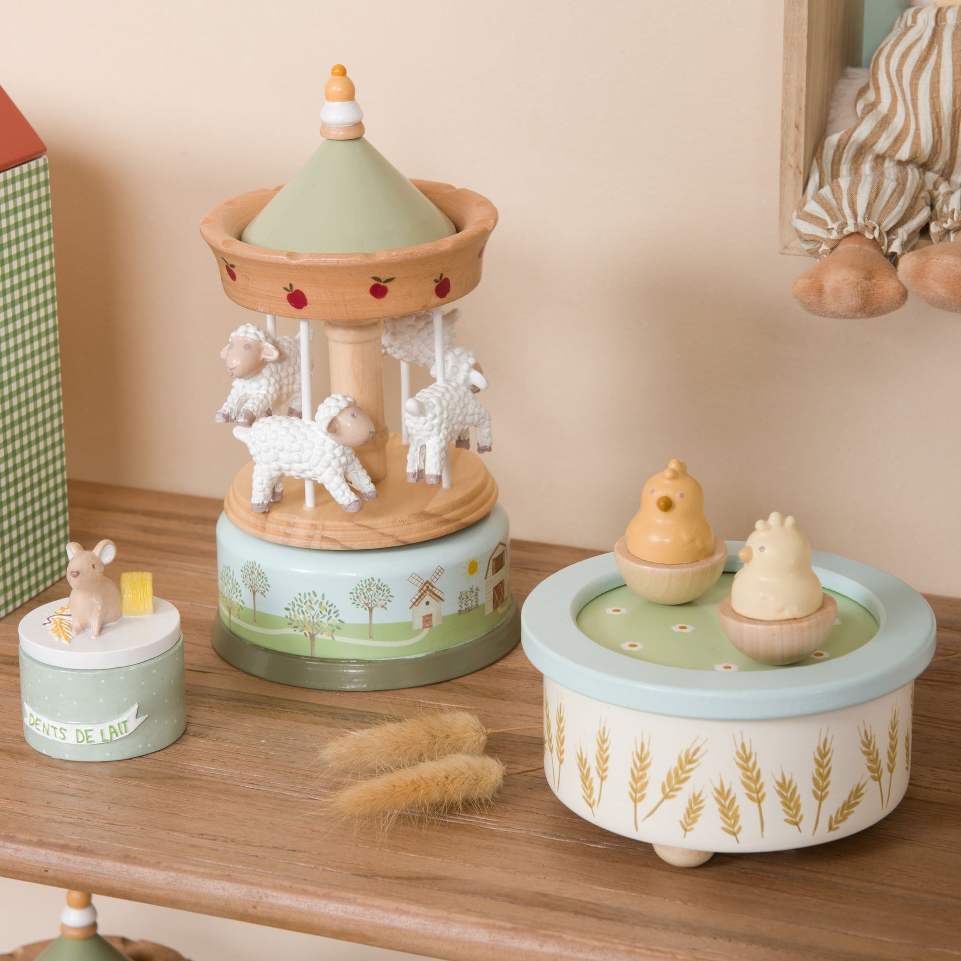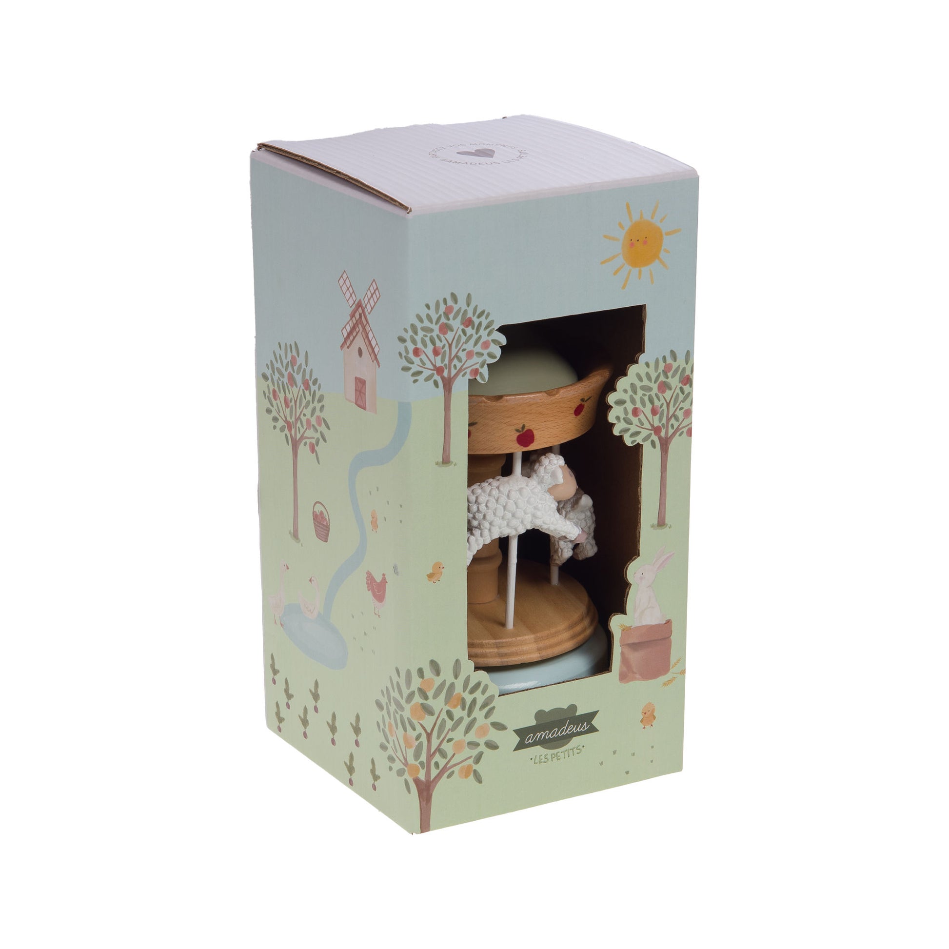 Plongez dans l'univers doux de la ferme avec ce carrousel Louison en bois naturel. Son design charmant et ses couleurs pastel apportent une touche poétique à la chambre de votre enfant, tout en stimulant son imagination. Compact et léger, il se manipule facilement et devient un objet décoratif aussi tendre que ludique.
