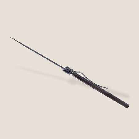 Le bois d’ébène qui orne le manche de ce couteau Deejo est une véritable ode aux noirs profonds. Cette essence de bois exceptionnelle a la particularité d'être pratiquement insensible à l’humidité ambiante. Elle s’avère ainsi être ainsi la plus dense, la plus résistante et la plus précieuse qui soit, idéale pour cette magnifique pièce de coutellerie.