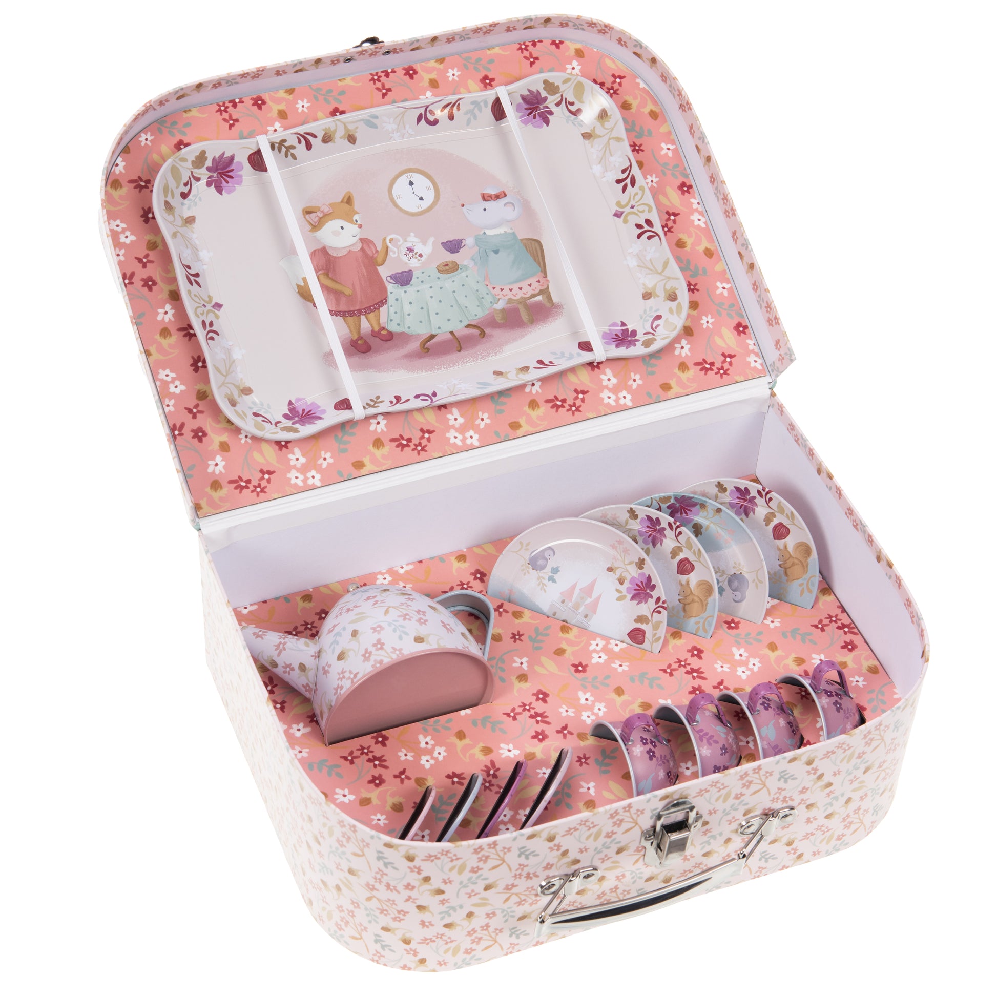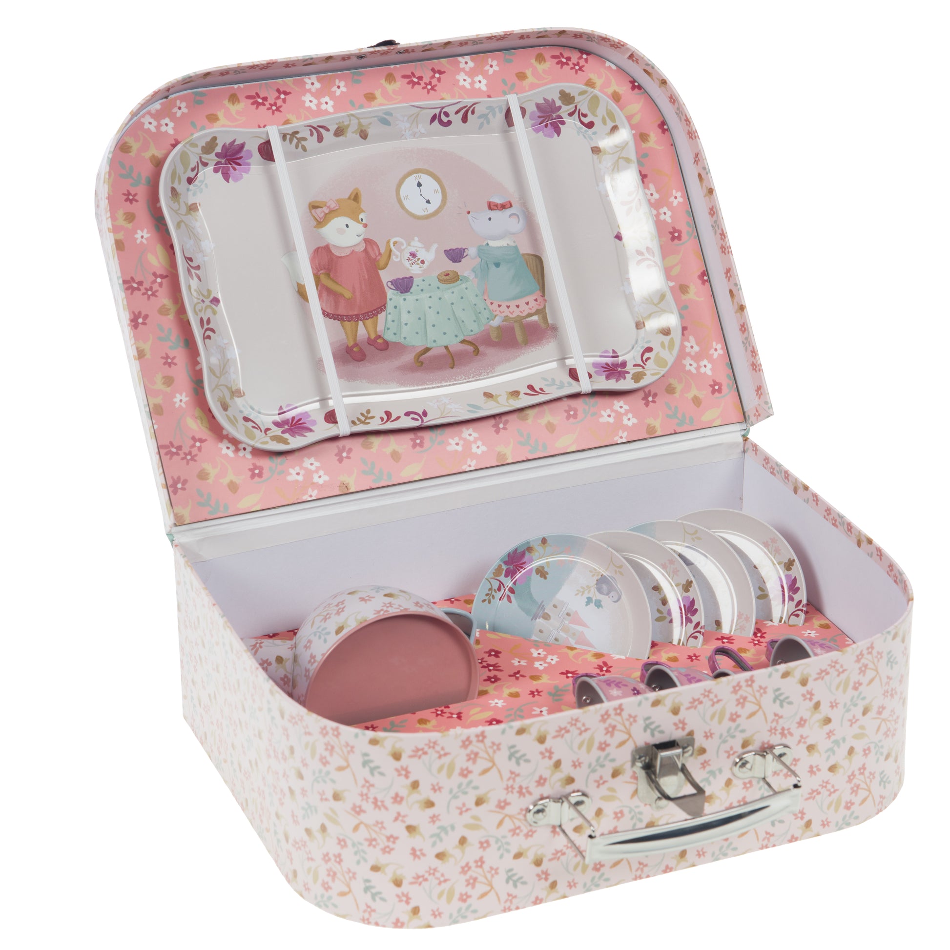 Découvrez la valise dinette en métal Zoé, une magnifique valise comprenant un service à thé en métal de 14 pièces.