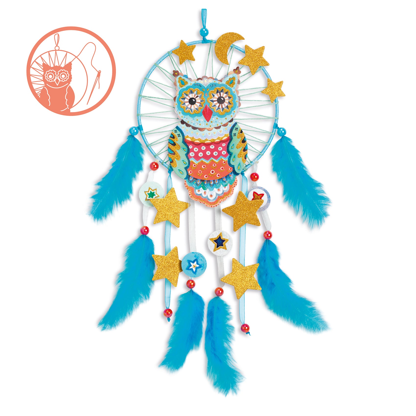 Le coffret créatif « Attrape-rêves Golden Chouette » fait partie de la collection DIY de Djeco. Cette collection propose des activités créatives variées pour réaliser soit même des objets de décoration. L’enfant est fier du travail accompli et de la réalisation d’un bel objet qu’il choisira d’offrir ou de garder pour la décoration de sa chambre.