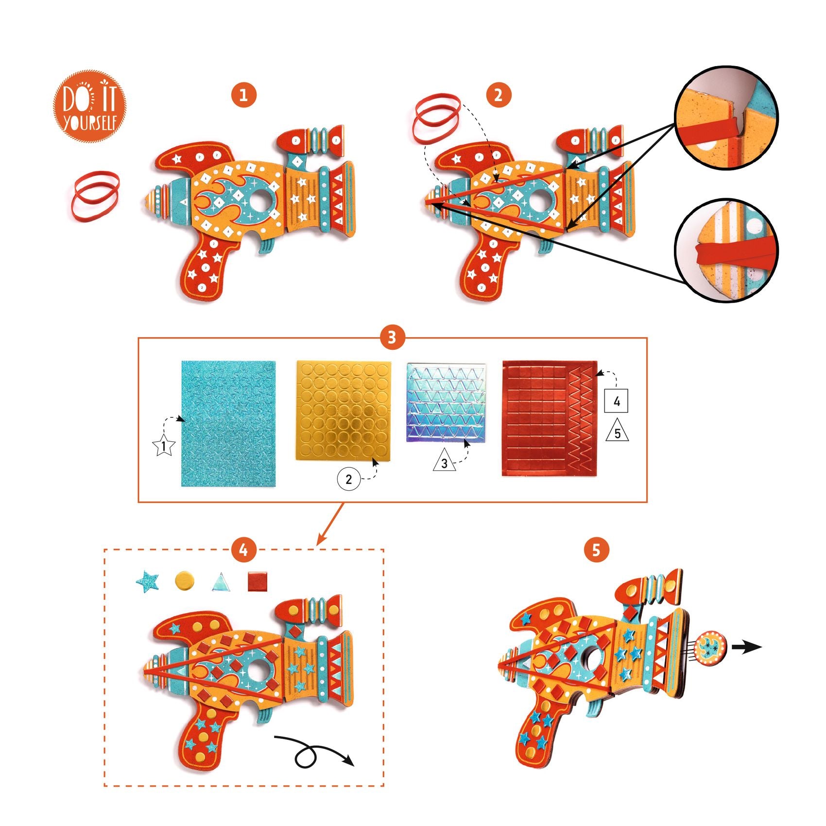 Découvrez le coffret Lanceurs de jetons à décorer Kosmik de la collection Do It Yourself de Djeco, un coffret créatif pour les enfants à partir de 5 ans permettant de confectionner 3 lanceurs de jetons à l'aide de stickers mosaïques.