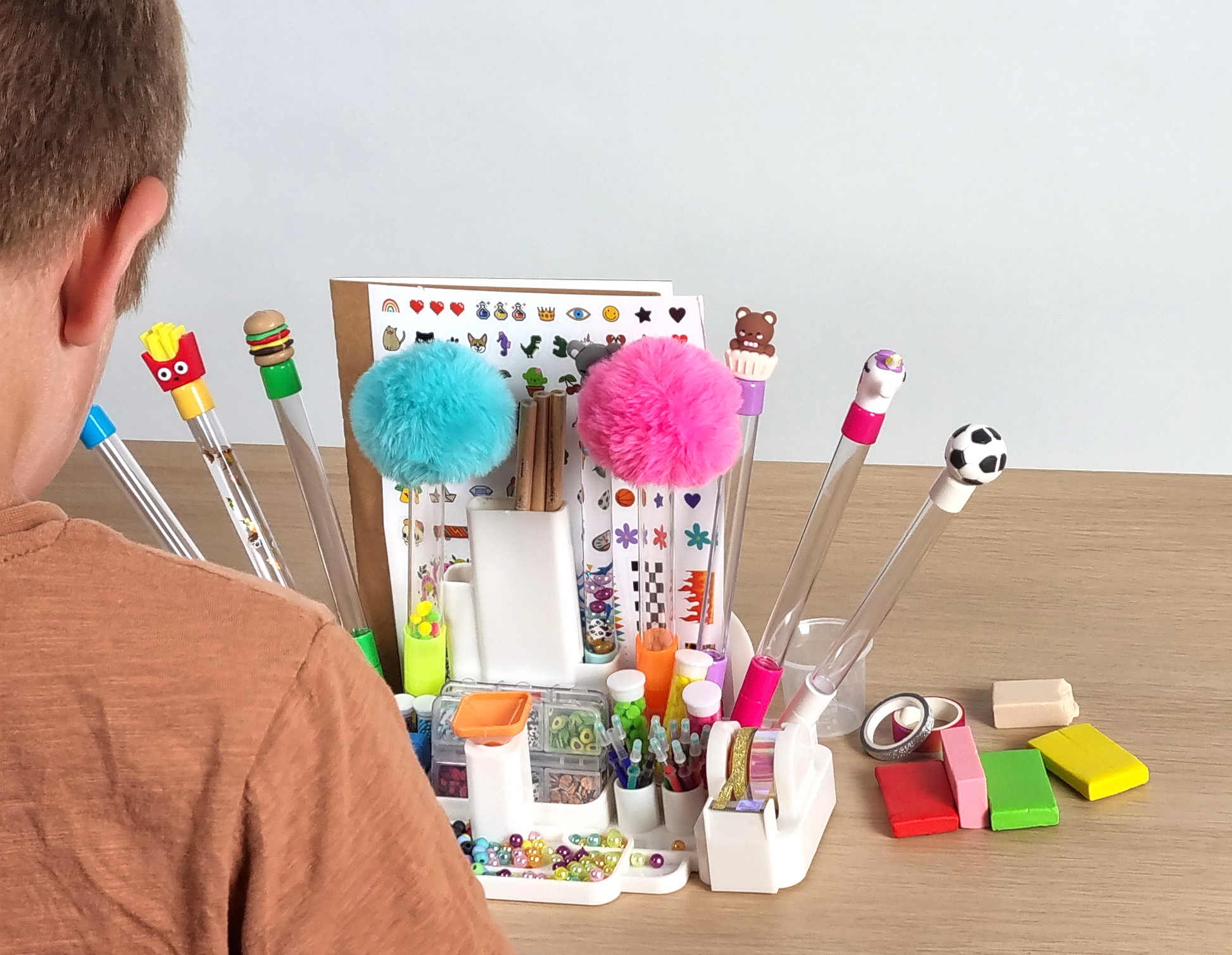Une station pour customiser 12 crayons ainsi que du matériel de bureau selon tes envies.