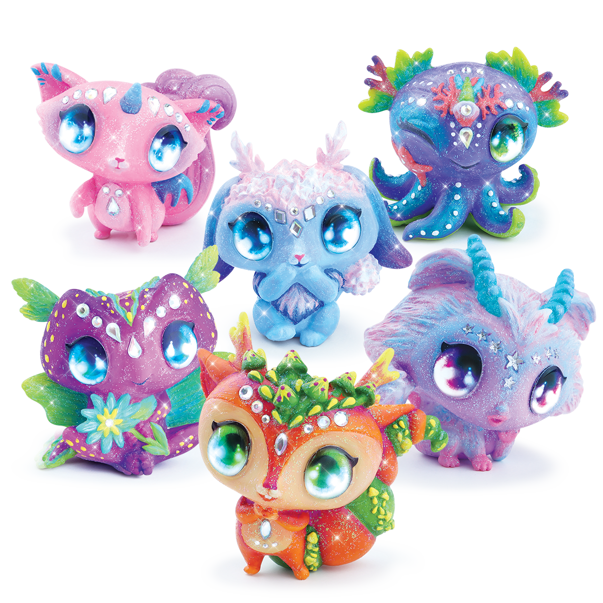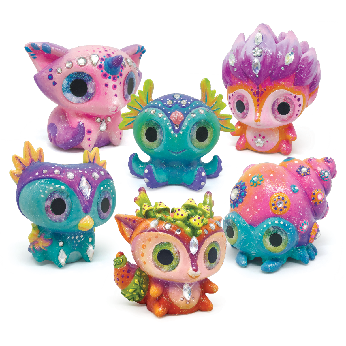 Accueillons les meilleurs amis de nos favorites Nebulous Stars! Peins et collectionne ces six créatures fantastiques qui te t'observeront avec leurs yeux scintillants !