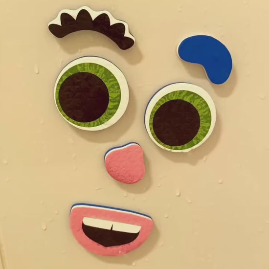 Avec 14 visages en mousse qui adhèrent directement à la baignoire ou au carrelage et 5 crayons de bain, les enfants peuvent créer une galerie de portraits amusants !
