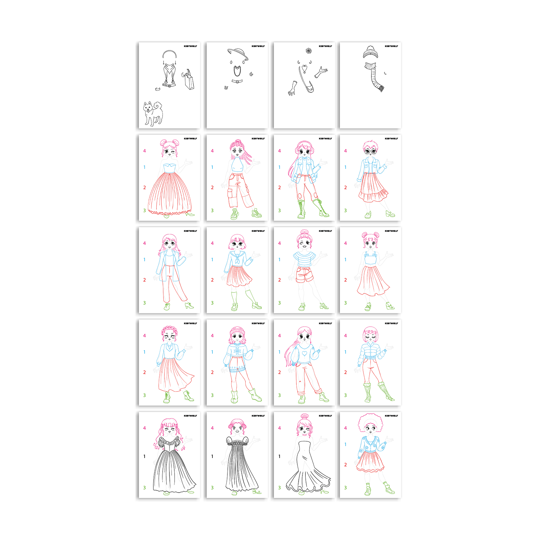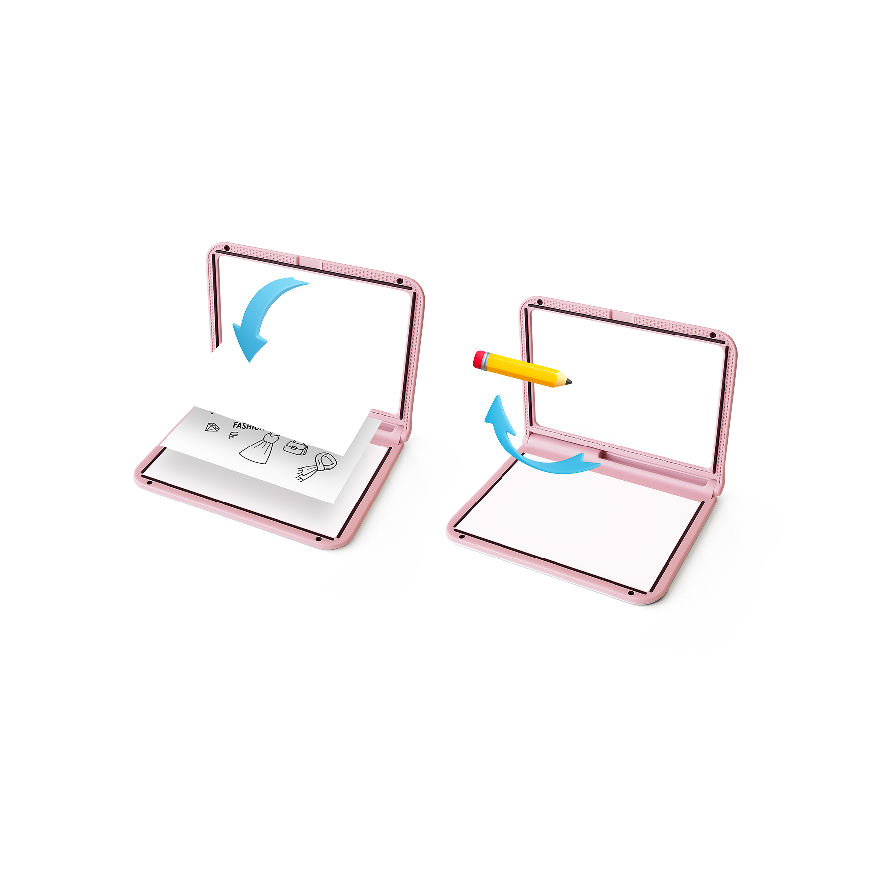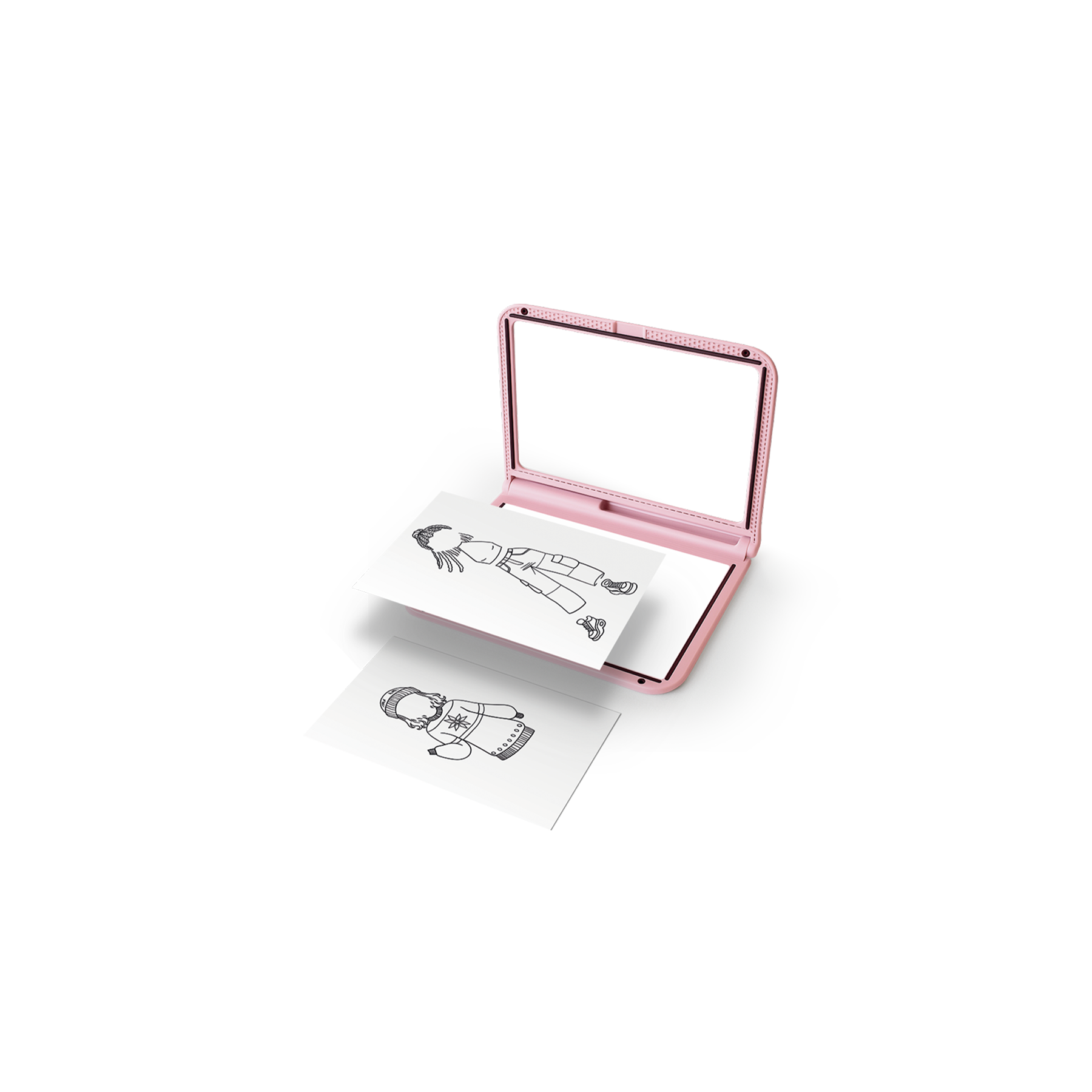 Avec KIDYDRAW PRO FASHION, les enfants deviennent de vrais stylistes en herbe. Grâce à un ingénieux système de décalques, ils associent silhouettes, tenues, accessoires et motifs à l’infini – plus de 1000 combinaisons possibles, comme dans un véritable atelier de mode. Biface, le tableau lumineux offre un espace d’expression libre, fun et créatif. Une activité valorisante pour développer son style, stimuler son imagination et s’amuser loin des écrans.