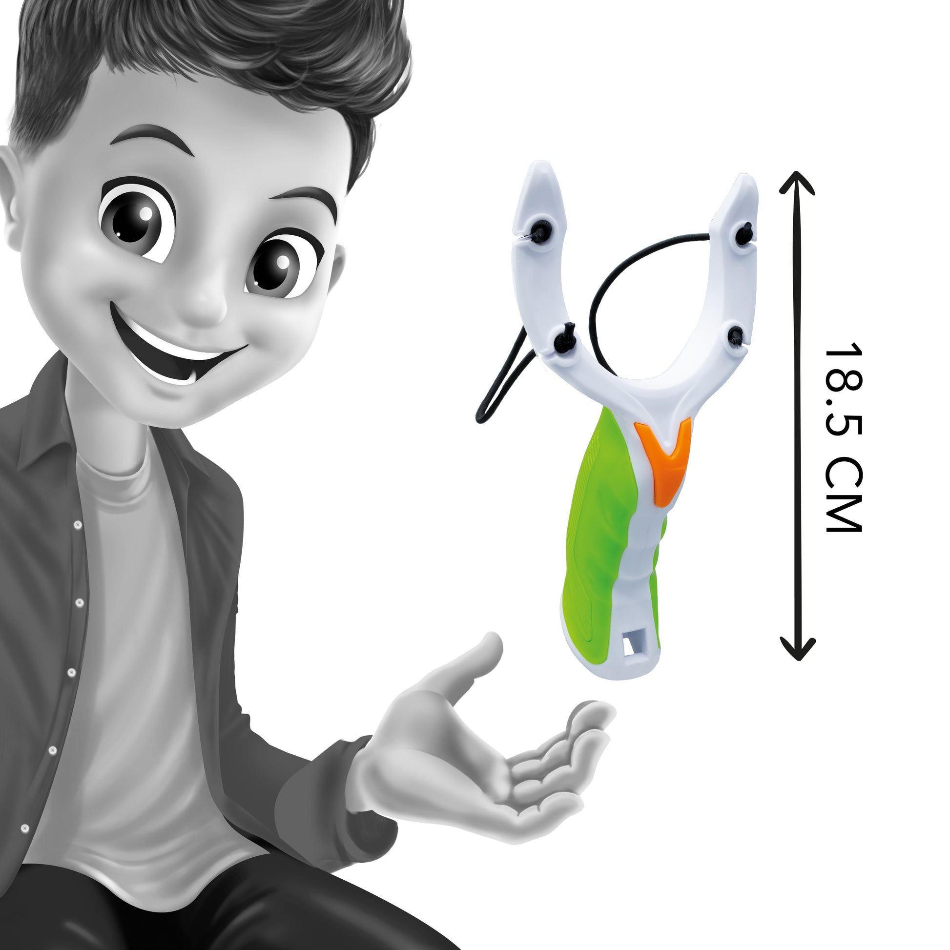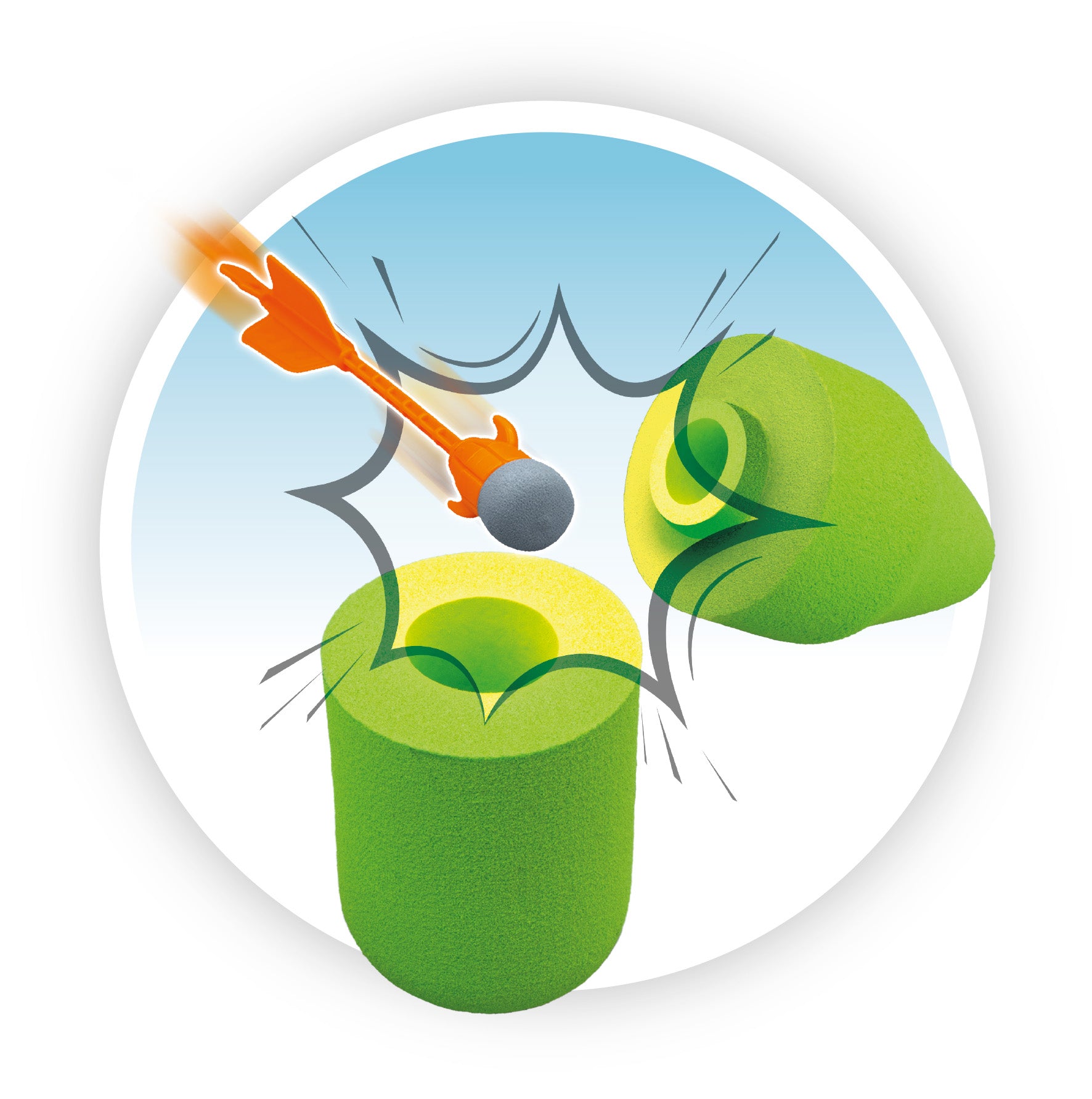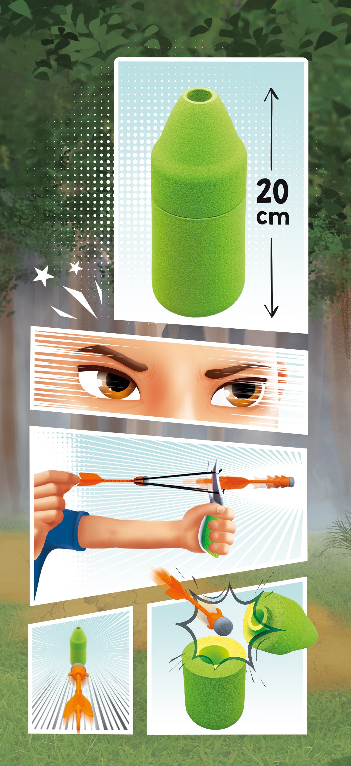Inclus : 3 fléchettes sécurisées et des élastiques de rechange.