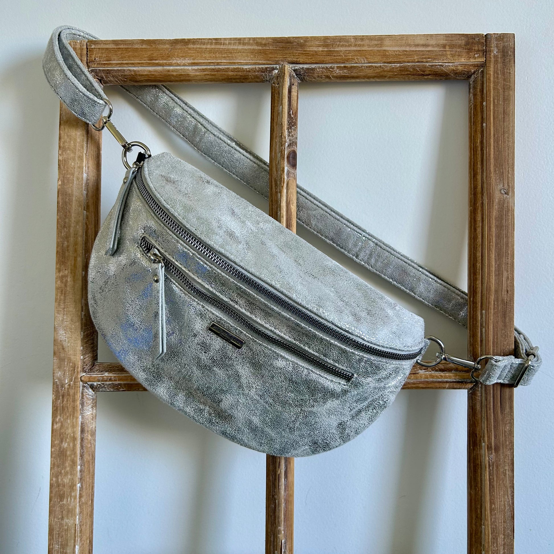 Banane : 28x18x9 cm. 1 poche zippée arrière, 1 poche zippée avant, 1 poche zippée intérieur + 1 poche plate intérieur