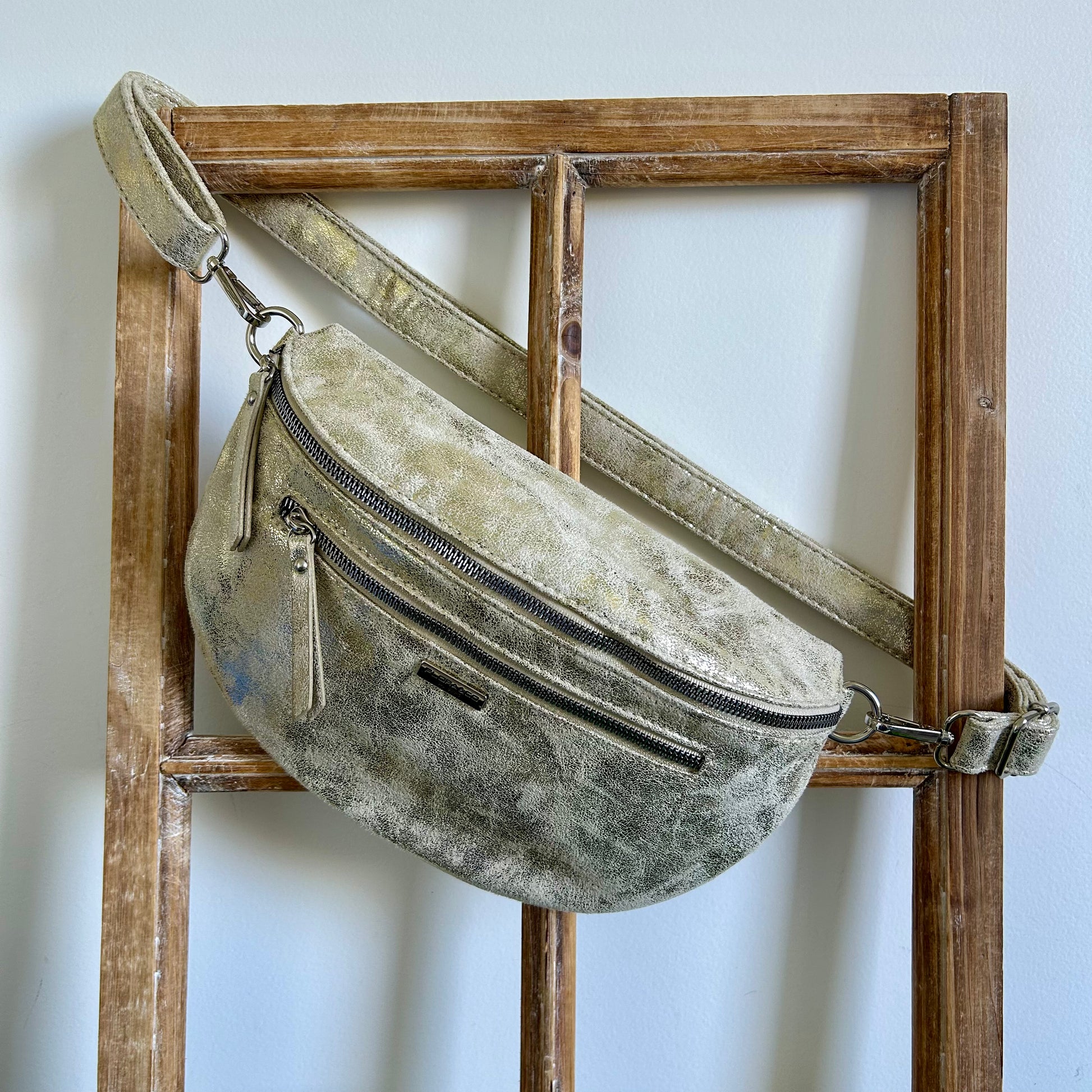 Banane : 28x18x9 cm. 1 poche zippée arrière, 1 poche zippée avant, 1 poche zippée intérieur + 1 poche plate intérieur