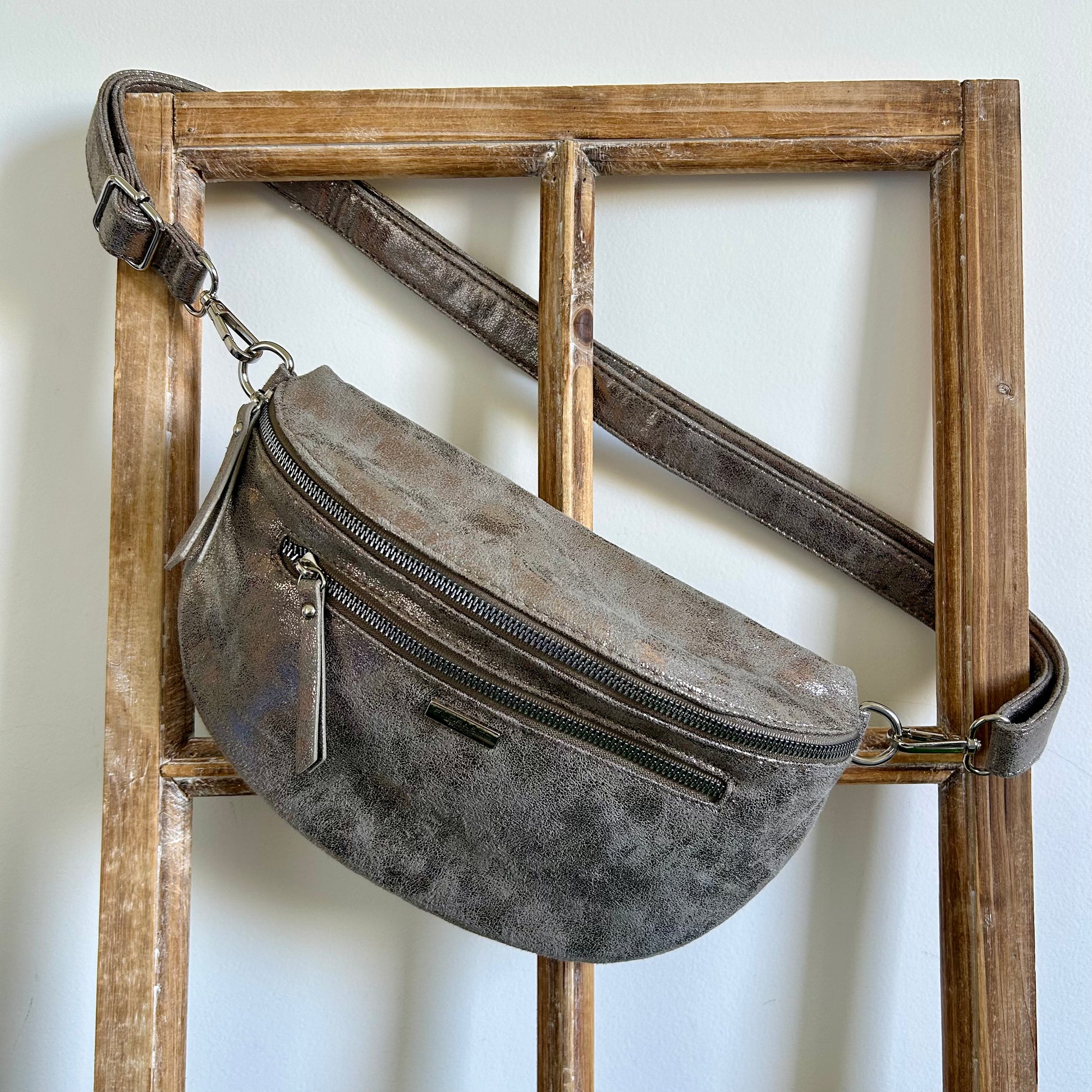 Banane : 28x18x9 cm. 1 poche zippée arrière, 1 poche zippée avant, 1 poche zippée intérieur + 1 poche plate intérieur