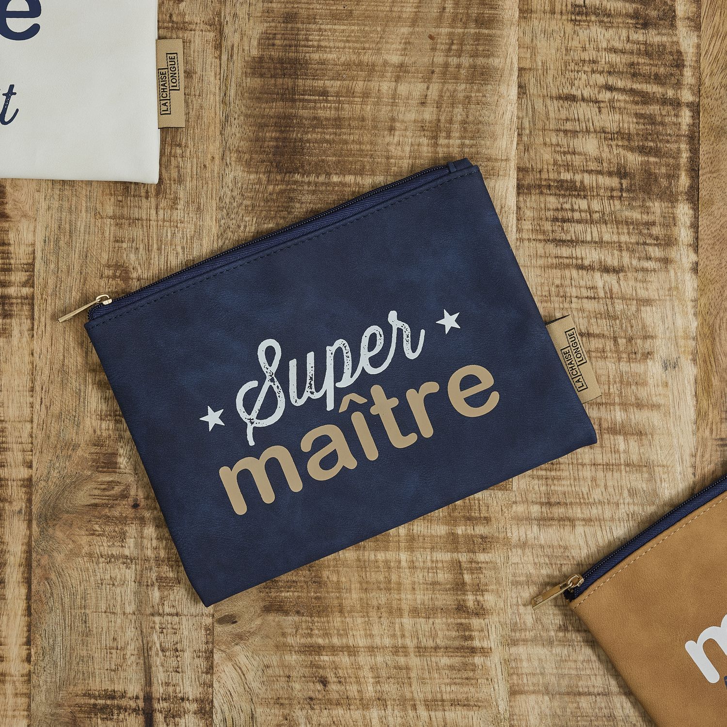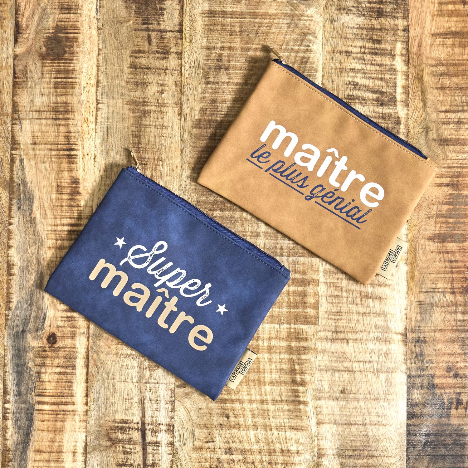 Pochette au choix "maître le plus génial" (camel) ou "super maître" (bleu)