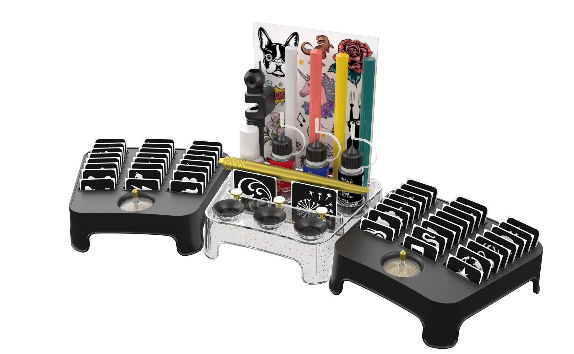 4 planches de tatouages temporaires sont également fournies pour des tattoos colorées et phosphorescents.