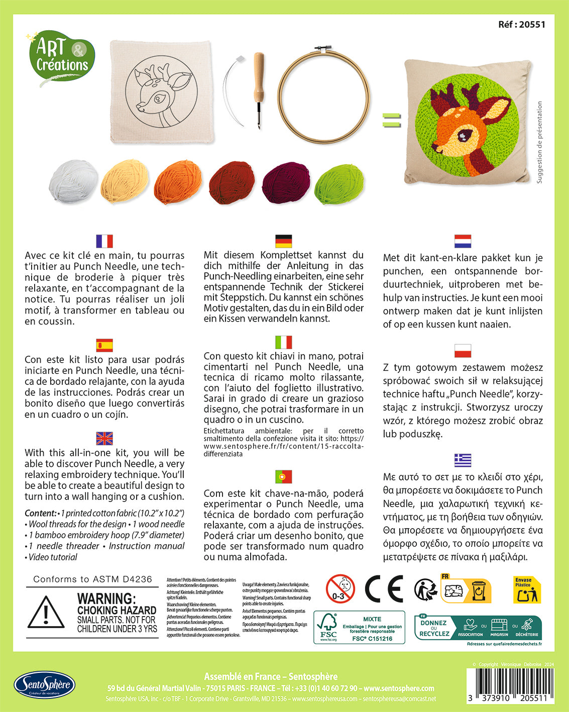 Avec ce kit clé en main, il sera facile de s’initier au Punch Needle, une technique de broderie à piquer ludique et déstressante, en s’aidant de la notice pas-à-pas. Il sera ensuite facile de réaliser une adorable illustration, à transformer en tableau ou en coussin.