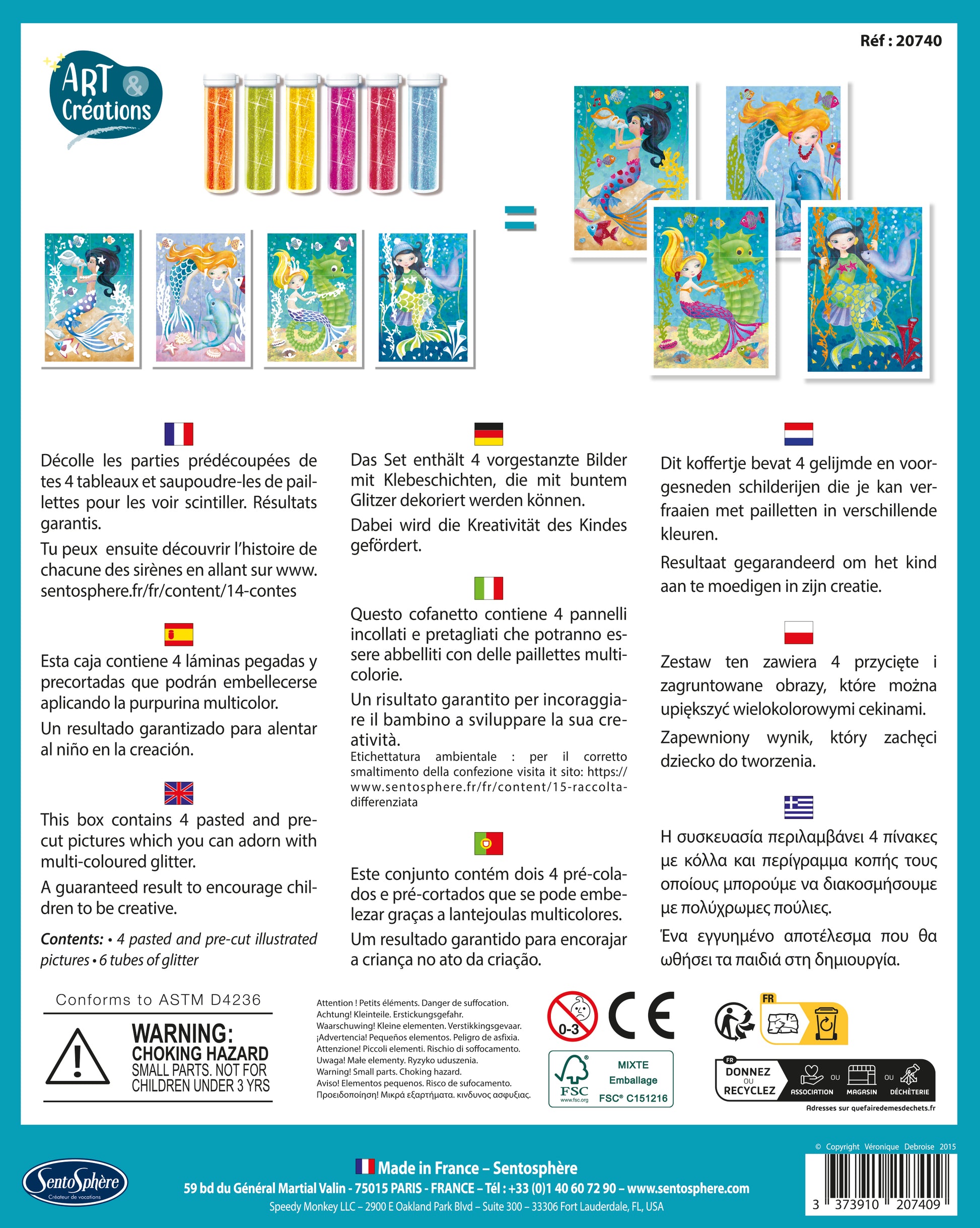 A l'aide des tubes de paillettes et d’illustrations prédécoupées et préencollées, les enfants pourront facilement donner vie à de magnifiques tableaux, sans se salir ! Il leur suffira d’agrémenter différents détails de l’illustration en suivant quelques étapes :
